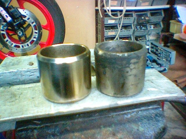 Die GPX 750RDie Maschine gehört Bernd B.Andy R. und ich haben uns vorgenommen die Maschine wieder fit zu machen. BremsbackeDie Bremsbacke hinten ließ sich nicht mehr bewegen.Die Folge von undichten Dichtungen, es wurden nur die Bremsbeläge gewechselt, jedoch nichts anderes geprüft. Wir drückten mit 12 bar die Kolben aus dem Sattel und polierten alles wieder. Nach dem ersetzen der Dichtungen, die waren dann doch defekt geht alles wieder. Der Grad an der Bremsscheibe ist weggefräßt worden, die Mindeststärke der Bremsscheibe ist eingehalten sollte weiter beobachtet worden.